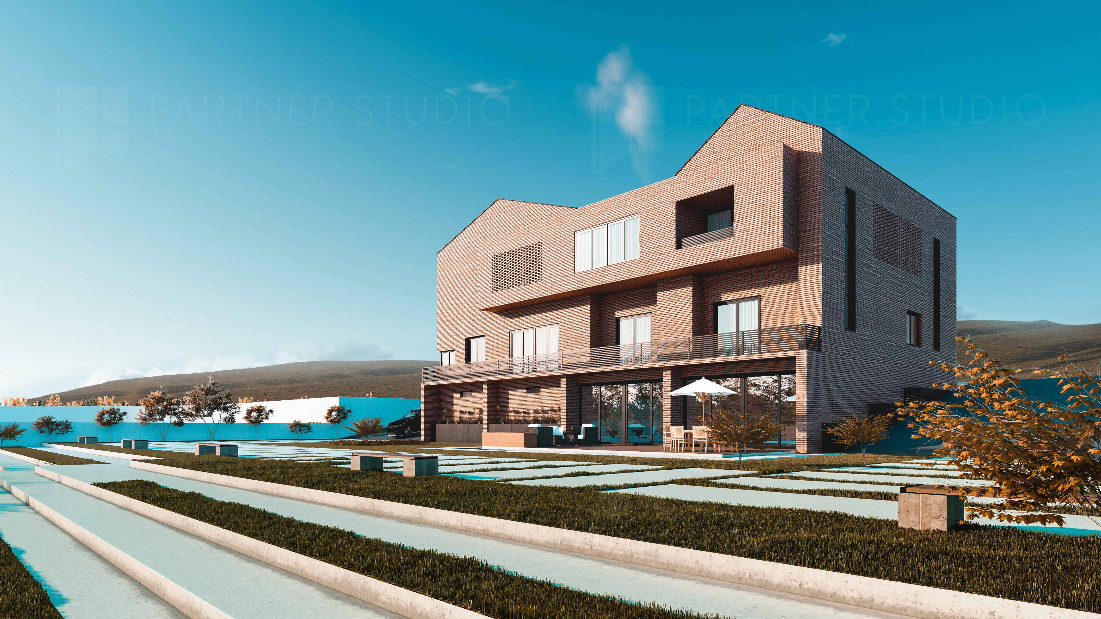 لە دیزاینی ئەم ڤێلایە سەرنج دراوە لەسەر بەکارهێنانی جۆرە خشتێکی تایبەت و جیاواز